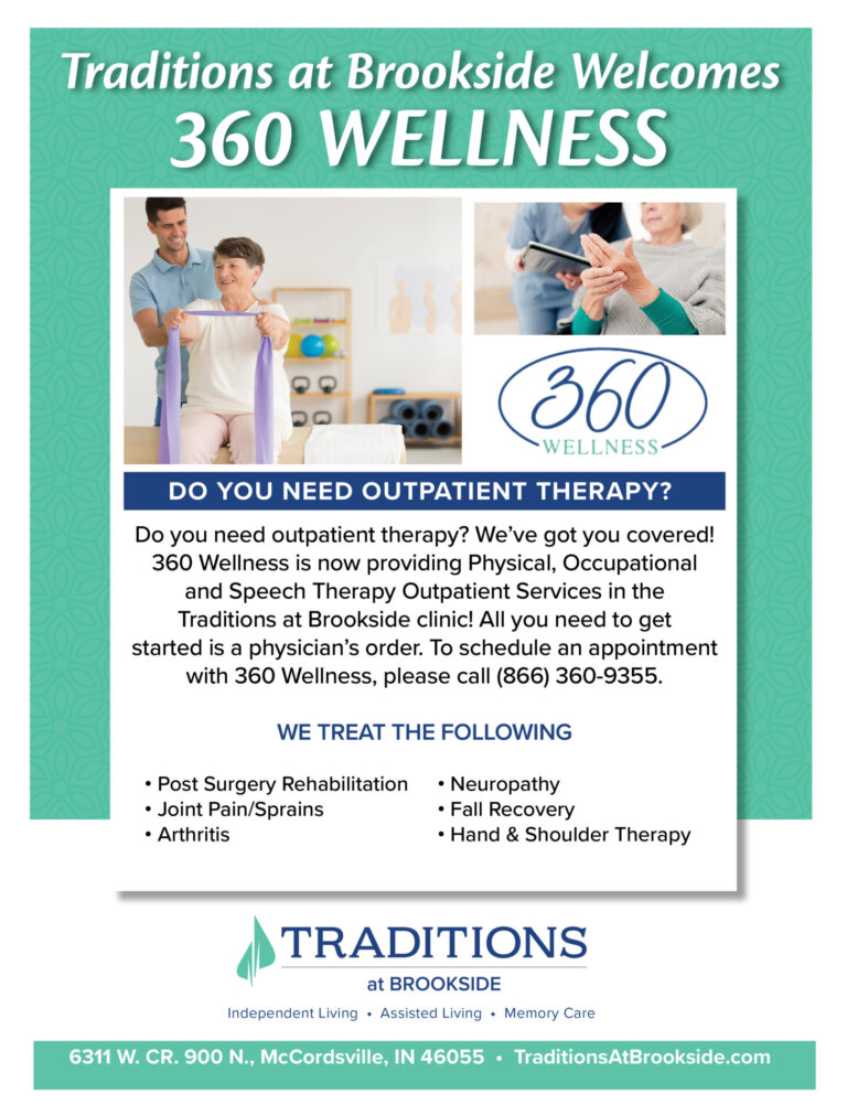 Traditions at Brookside is located in McCordsville, IN, near Indianapolis, Indiana. We offer Independent Living, Assisted Living, Memory Care, and Garden Homes in our senior retirement community. Nursing care and support, along with gracious amenities and lifestyle options are provided to our residents. We are an active adult community, within the Traditions Management family, that can help seniors with aging, Alzheimer’s, and Dementia care.